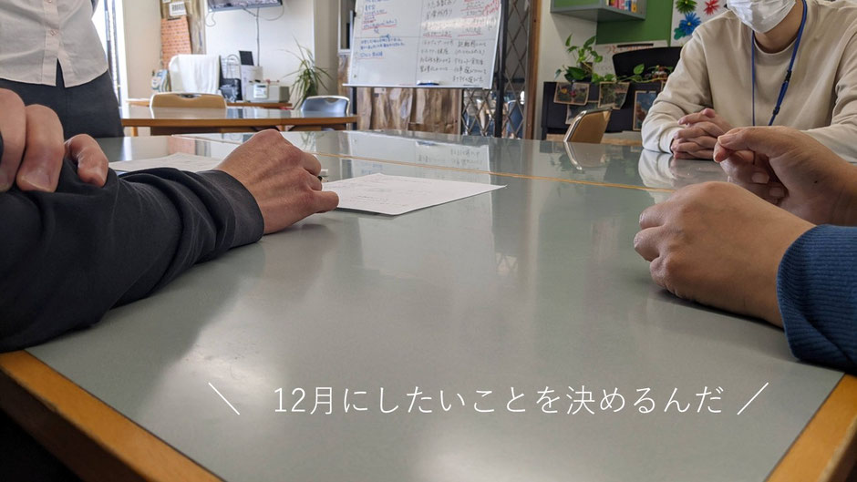 「人前で自分の意見が言えるようになりたい」そんな方にはSSTもおすすめですが、「来月は、何をしたい会」というプログラムもぴったりです。その名の通り、みんなと話しながら来月のデイケアプログラムを決めます。今日はいったいどんなプログラム案が出たのでしょう?「社会性を身につけるルールやマナー講座」「ダイエットと体力アップがしたい」という声が集まりました。みんなの案は、これから順番に取り入れていきますね。まずは体力アップのハードトレーニングから、って誰も来ないか…。さて、明日のプログラムはこちら。午前は、アート。午後は、ししゅうとお菓子作り。手先を動かして、集中だ!