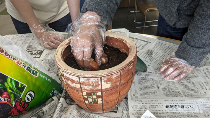 今日のデイケア · 2025/11/27 球根 「日々の楽しみがない」というあなた、ガーデニングをしてみませんか。いつもと違う非日常的な体験が病気の時間を減らし、健康な時間をのばします。今日はチューリップの球根を植え、多肉植物を植え替え、その他の植物をオシャンティーに飾りました。やるからにはおしゃれがいいよね。この感覚は大事。ああ、春が楽しみ。それまで土の中で待っててチューリップの球根よ。さて、明日のデイケアは午前がSST(コミュニケーションの練習)、午後はデイケアカレンダー作り(集中力アップや手先を起用に)。明日もお待ちしています。 tagPlaceholderカテゴリ: