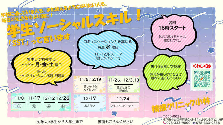 学生支援 · 2025/12/10 一点集中 学校生活を今よりもちょっと楽にするプログラムがあります。それが、学生ソーシャルスキルトレーニング。今日は初参加の学生さんがいたので、自己紹介からはじめました。そのあとは、感覚統合という技法を使ったトレーニング。最後には線の間に線を引くという難易度MAXなトレーニングをしましたが、みんなすごい。応援しあって、なんとクリアしました。いいチームワークじゃないか。こういう体験が学校生活にも活きてきます。ああ、でも見てたら目がまわるぅ。次回はあさって12(金)です。 tagPlaceholderカテゴリ: